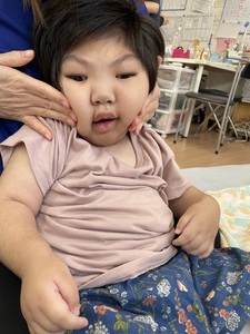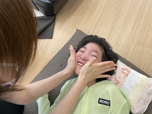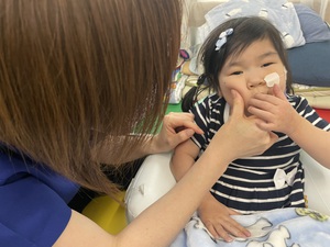 スタッフにほっぺを触られて大笑いするお友達や、