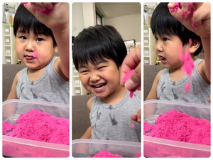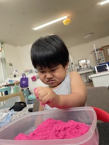 お部屋で遊べる砂で遊びました。